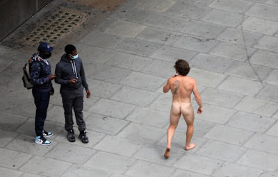 As imagens do homem nu e com máscara nas partes genitais caminhando pelas ruas de Londres viralizou nas redes sociais